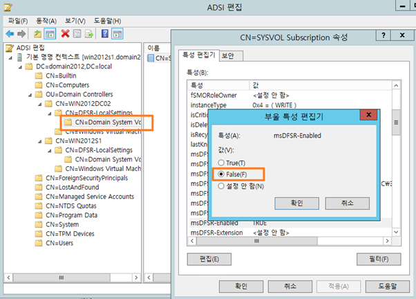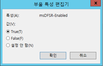 대상 DC의 msDFSR-Enabled 값을 False에서 True로 변경