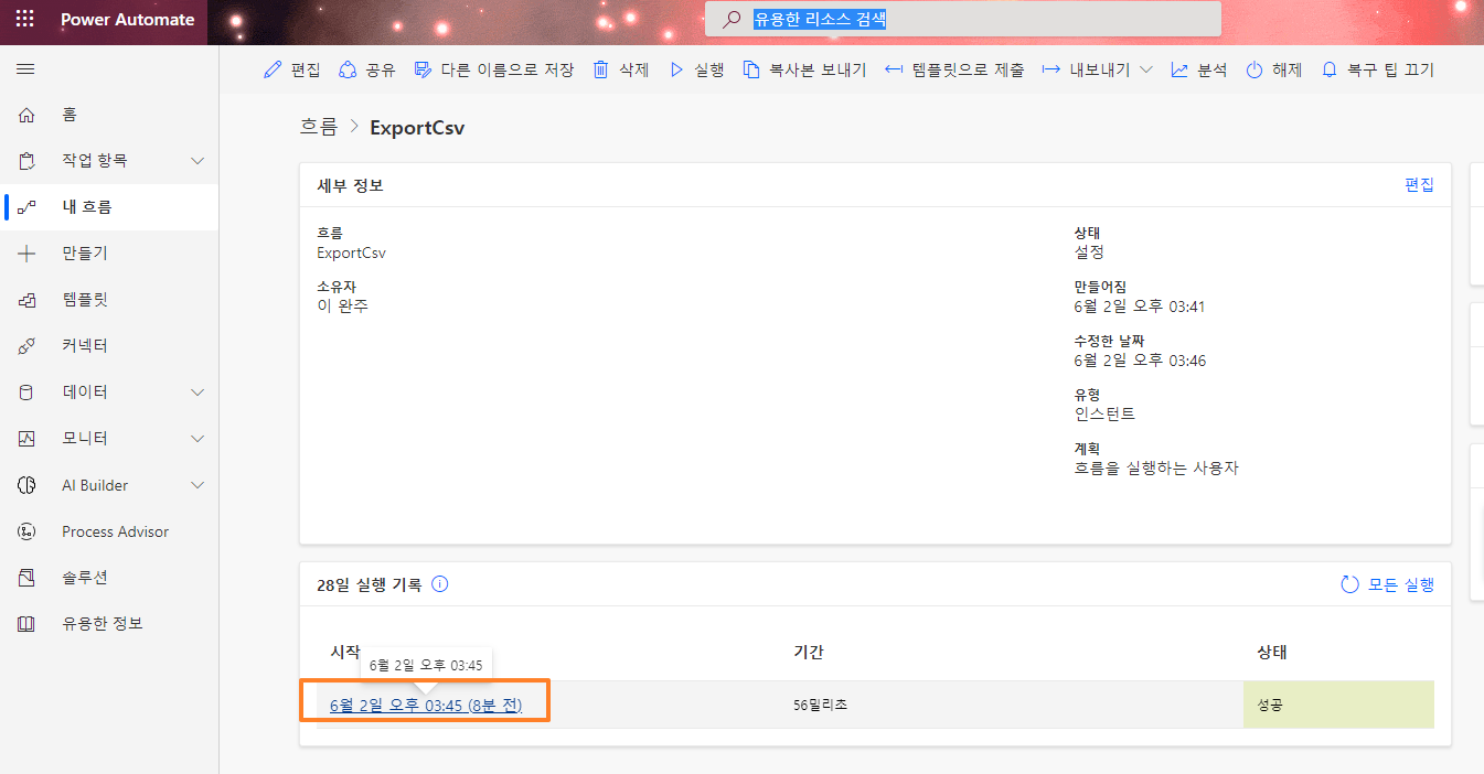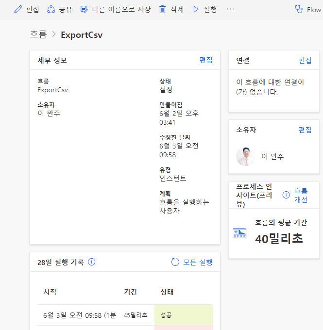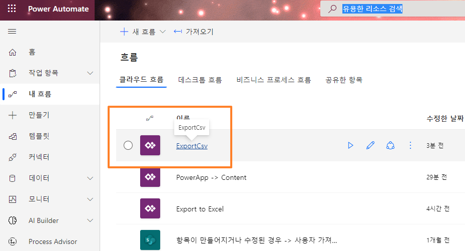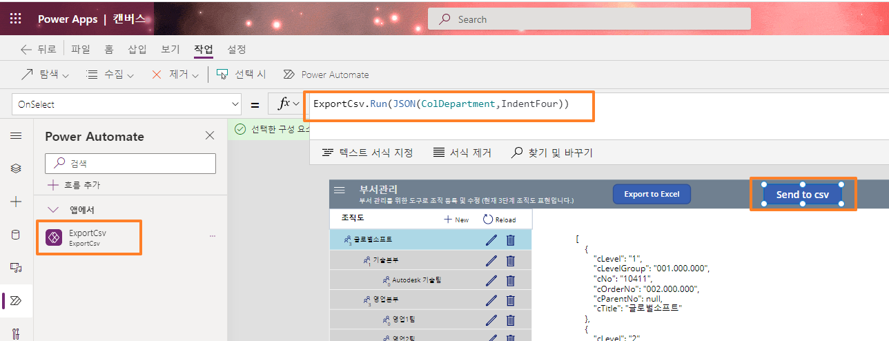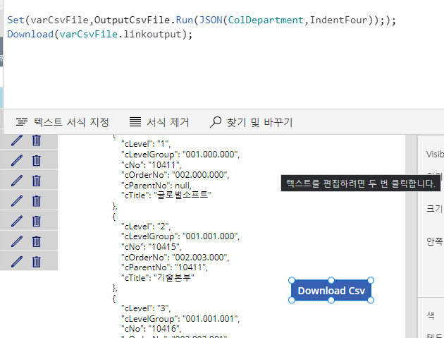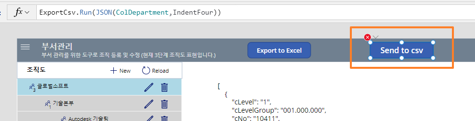 Powerapps의 데이터를 CSV 로 내보내기 과정 입니다.