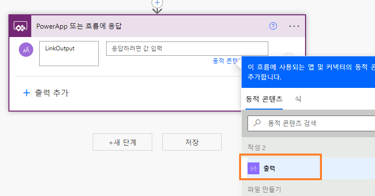 Powerapps 또는 흐름에 응답 - 출력 추가 - 텍스트