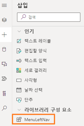 원하는 페이지에서 아래의 구성 요소를 추가하면 화면에 MenuLeftNav1 부터 생성되게 됩니다.