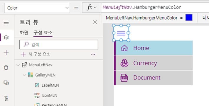 MenuLeftNav.HamburgerMenuColor 을 만들어 색 적용