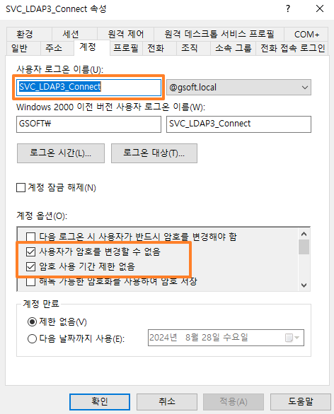 여기서 사용하는 계정은 소스에 들어가는 서비스 계정을 만들어 사용하고 일반 관리자 계정으로 사용하지 않는 것을 권장