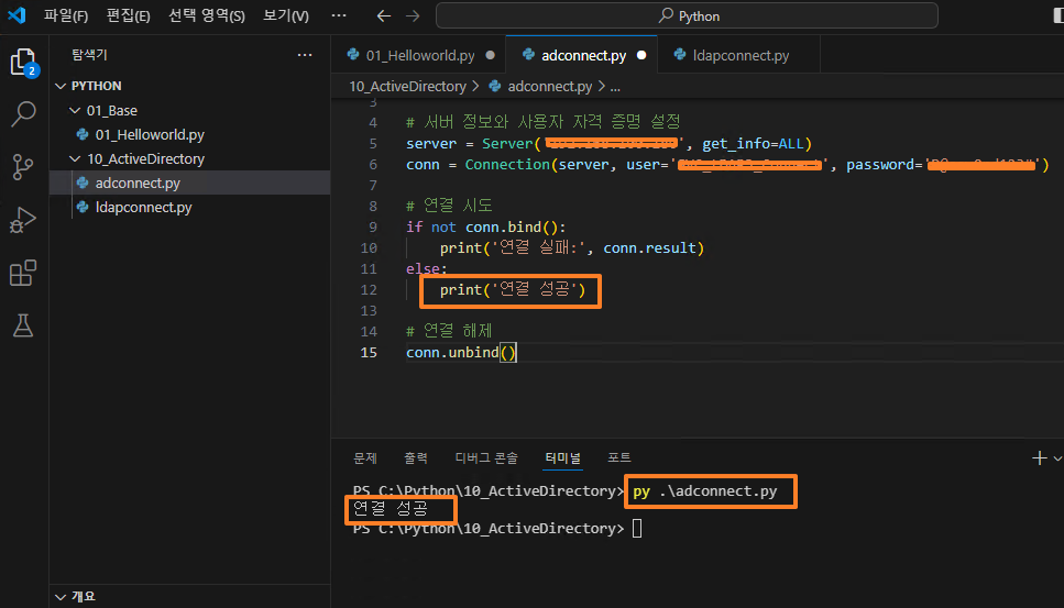 이번 내용은 Python으로 Active Directory에 연결을 하는 방법을 소개